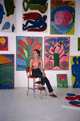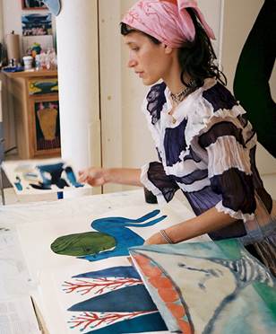 I feel her paintings remind me of the late collages by Matisse but they are in a female’s contemporary perspective. I also like her simple use of colour to depict figures and plants and trees.