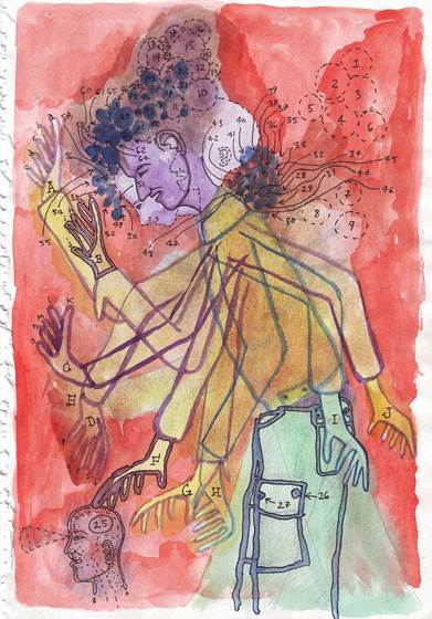 I like how there is a mixture of American and African culture in Akunyili Crosbys drawings. They also remind me of David Hockney’s early paintings that featured figures and interiors.
