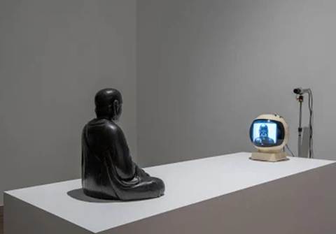 My favourite Nam Jun Paik artwork was a video sculpture called TV Buddha with a Buddha sculpture and early video camera videoing it and then shown on a little television. It was commissioned by famous Australian art collector and philanthropist John Kaldor.